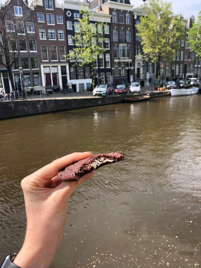 Van Stapele cookies: dark chocolate cookies with a white chocolate filling. We waited in line for about 10 minutes before getting fresh, warm, delicious cookies! It was a great mid-afternoon treat as we walked through the city.